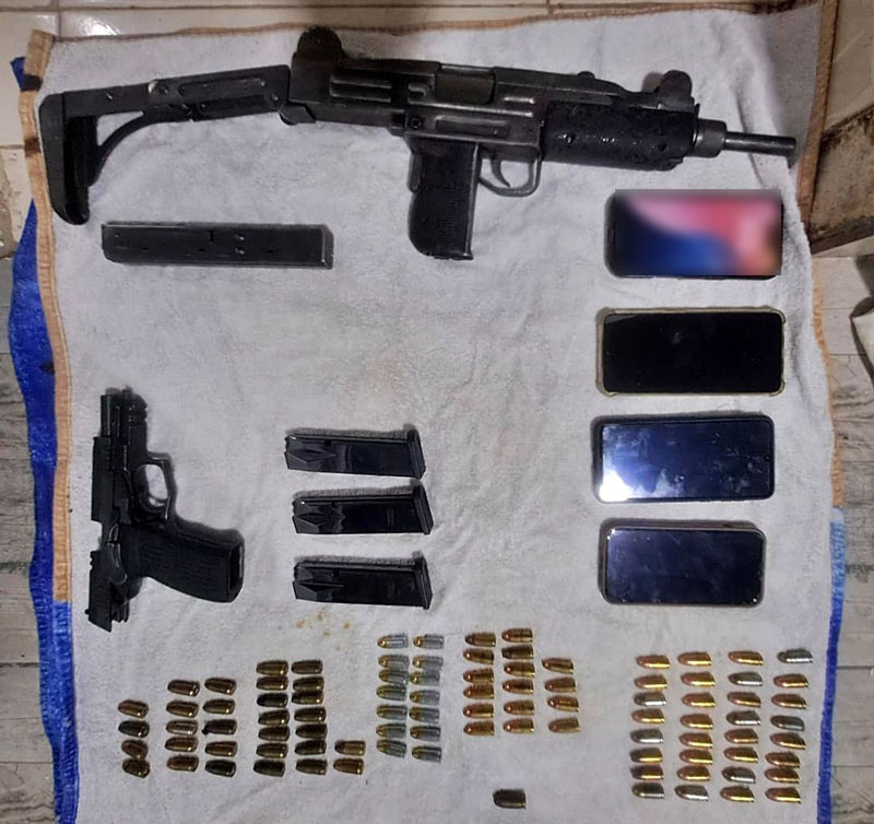 Durante los procedimientos, los uniformados incautaron una pistola ametralladora Uzi calibre 9 milímetros —subfusil compacto con capacidad para 30 municiones— y una pistola Bersa TPR9 sin numeración visible.