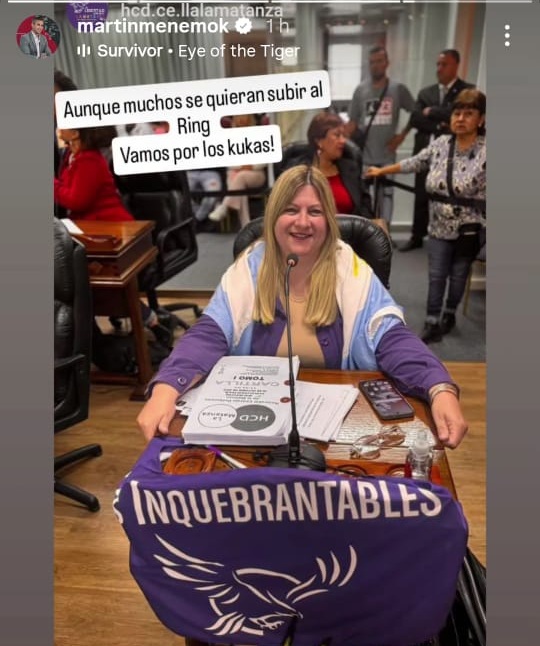 La estrategia se tradujo en gestos concretos. En el Concejo Deliberante de La Matanza, Lorena Ramos —ex dirigente radical y actual jefa del bloque libertario, además de esposa de Ontiveros— publicó una foto con el estandarte de Los Inquebrantables. El gesto fue replicado por Martín Menem en redes sociales, lo que desató una ola de críticas de los seguidores más duros del oficialismo, identificados con Las Fuerzas del Cielo y con la órbita de Santiago Caputo.